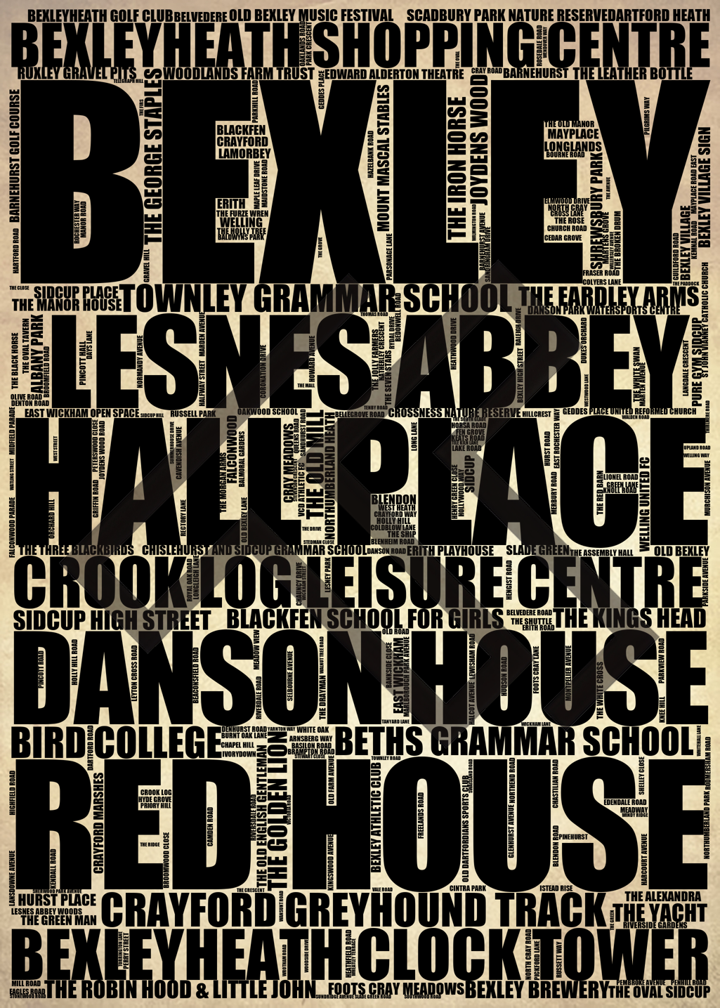 Bexley - Premium Typographic Word Cloud Prints, Posters & Gifts