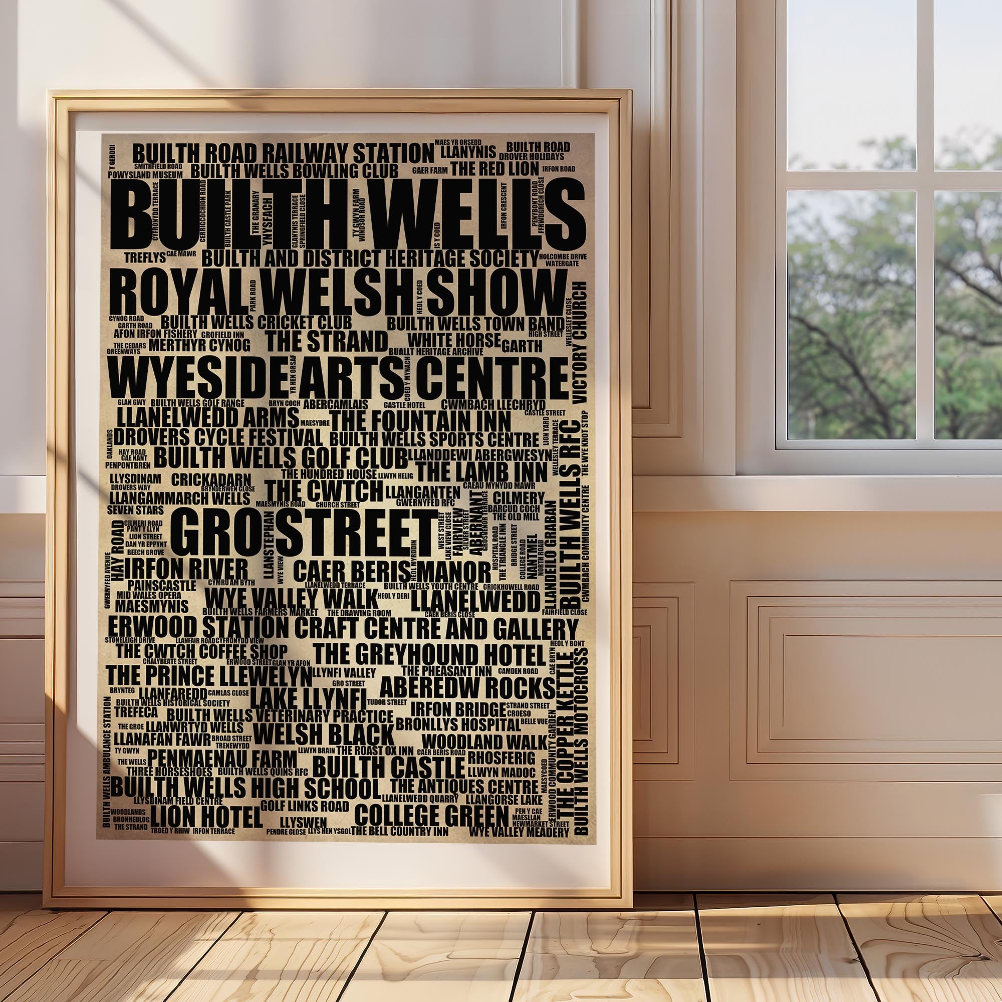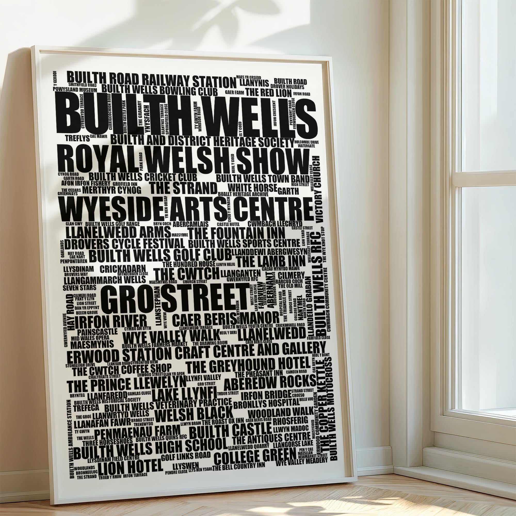 Builth Wells - Premium Typographic Word Cloud Prints, Posters & Gifts
