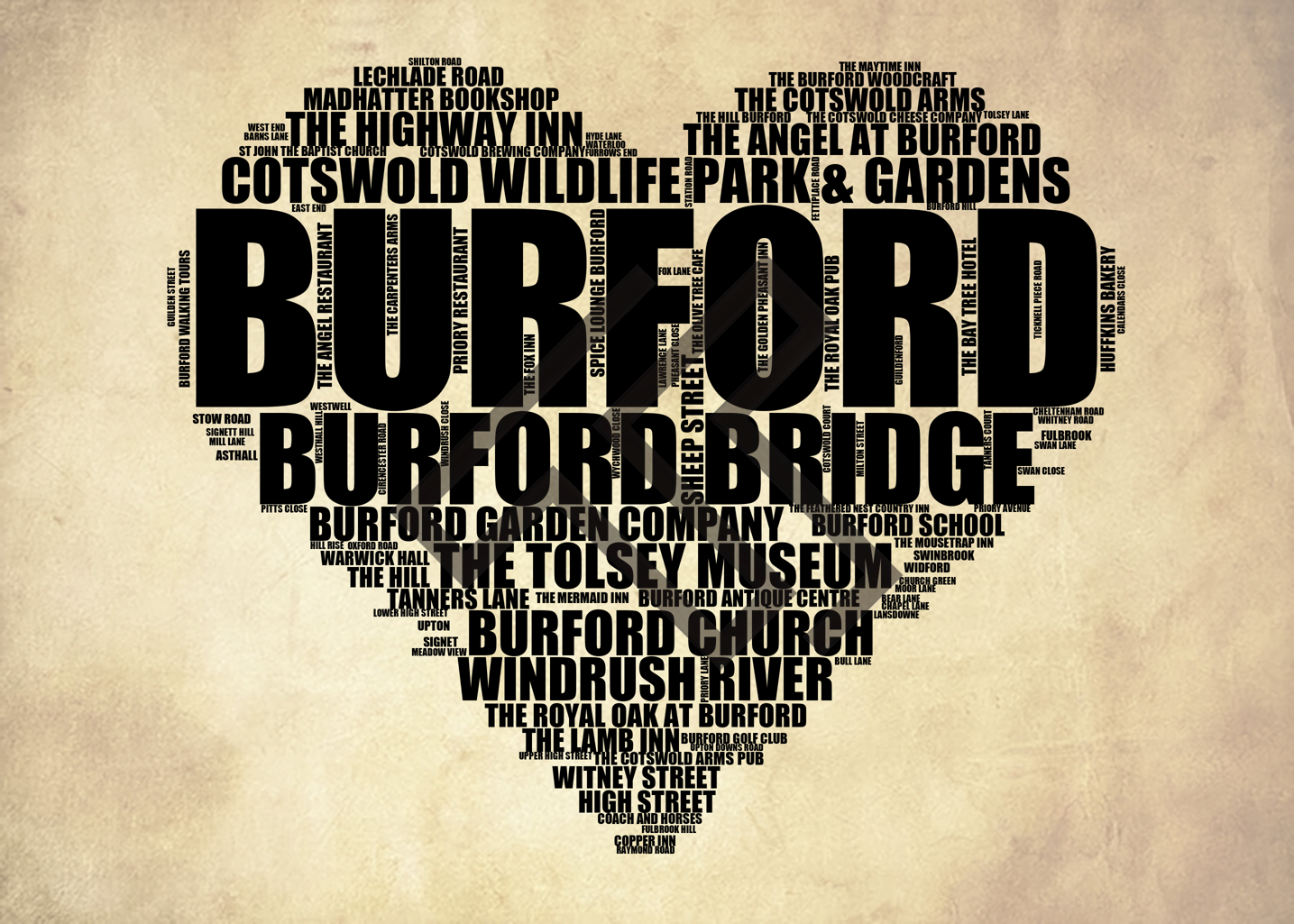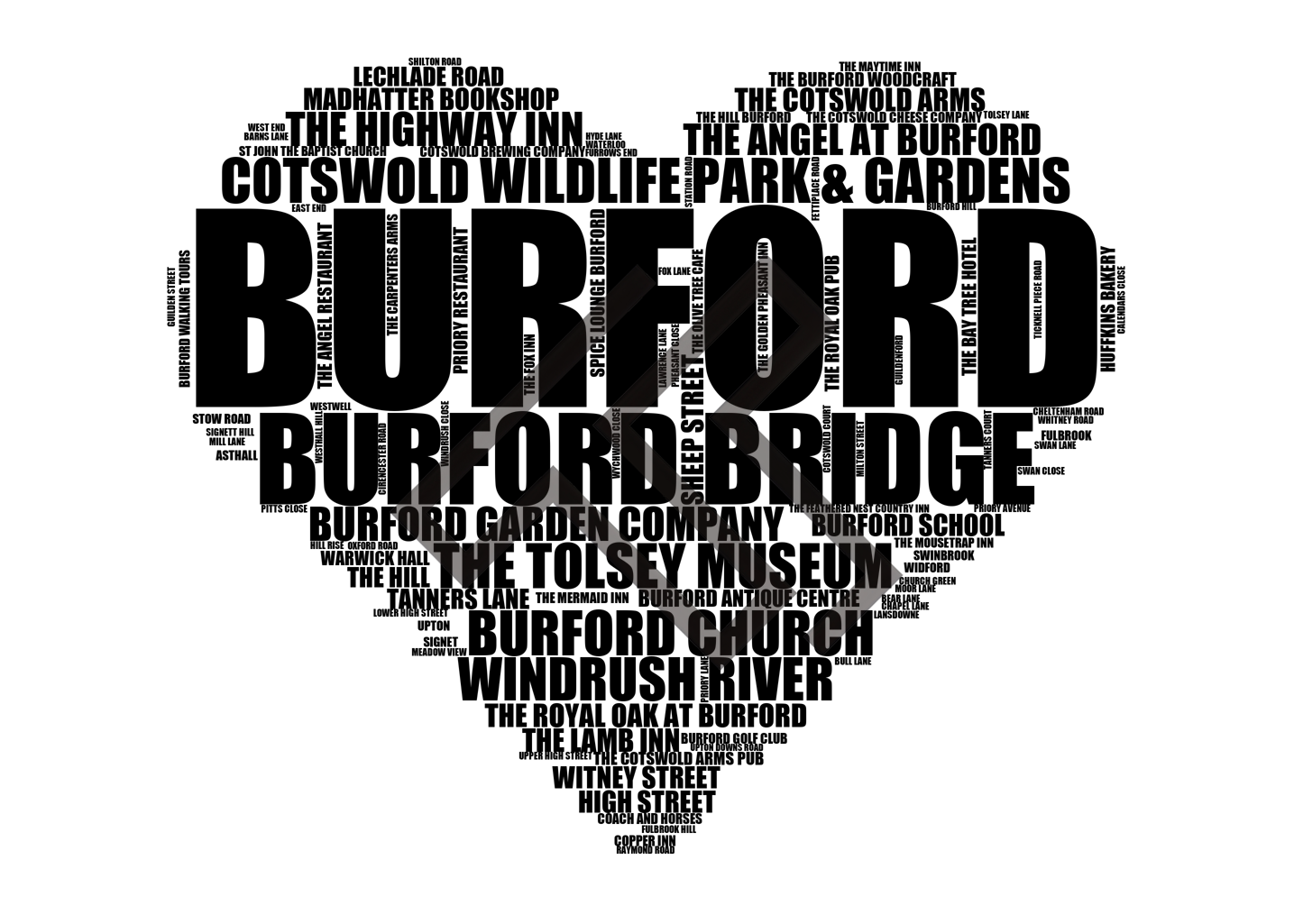 Burford - Premium Typographic Word Cloud Prints, Posters & Gifts