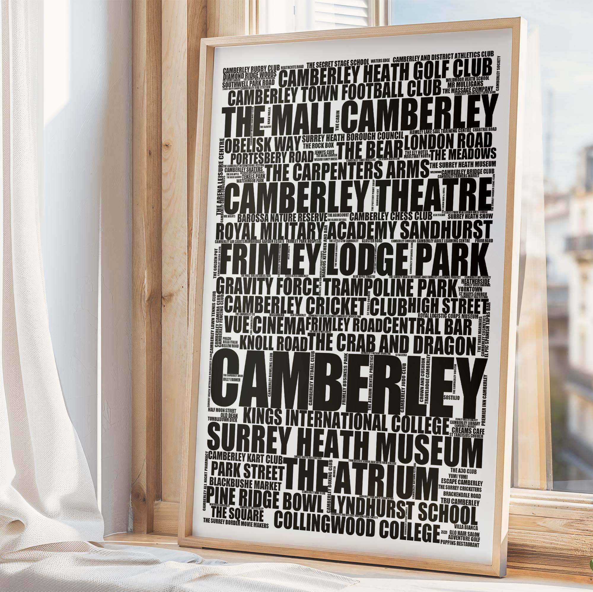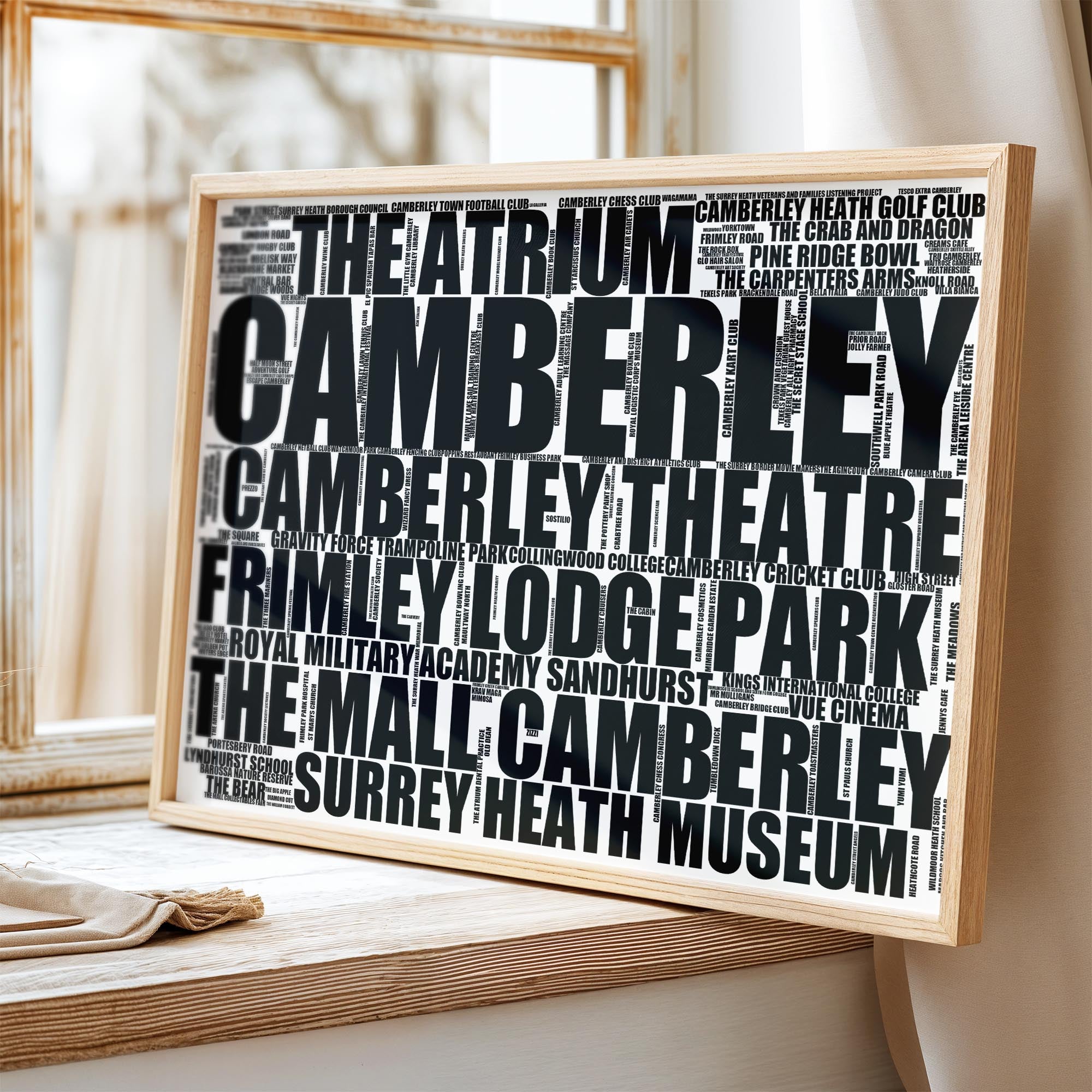 Camberley - Premium Typographic Word Cloud Prints, Posters & Gifts