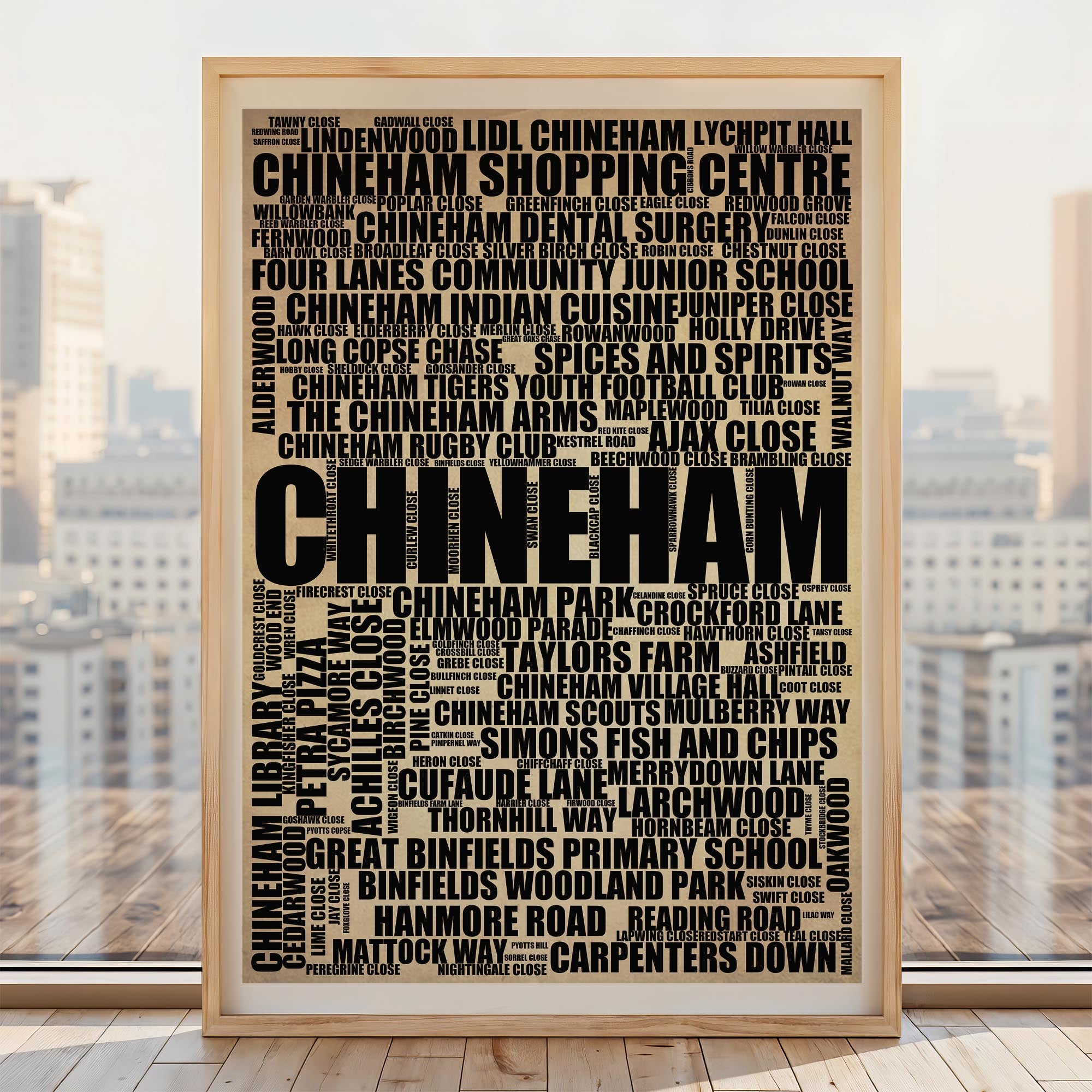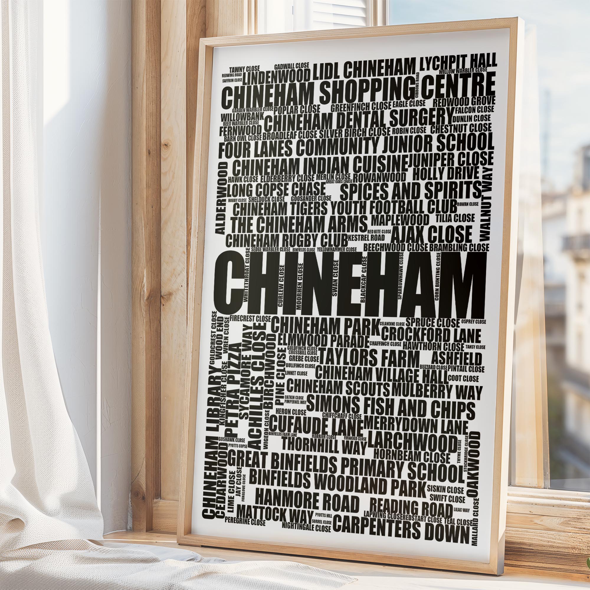 Chineham - Premium Typographic Word Cloud Prints, Posters & Gifts