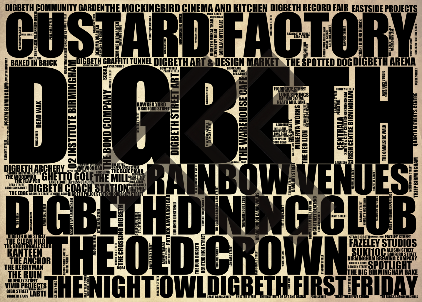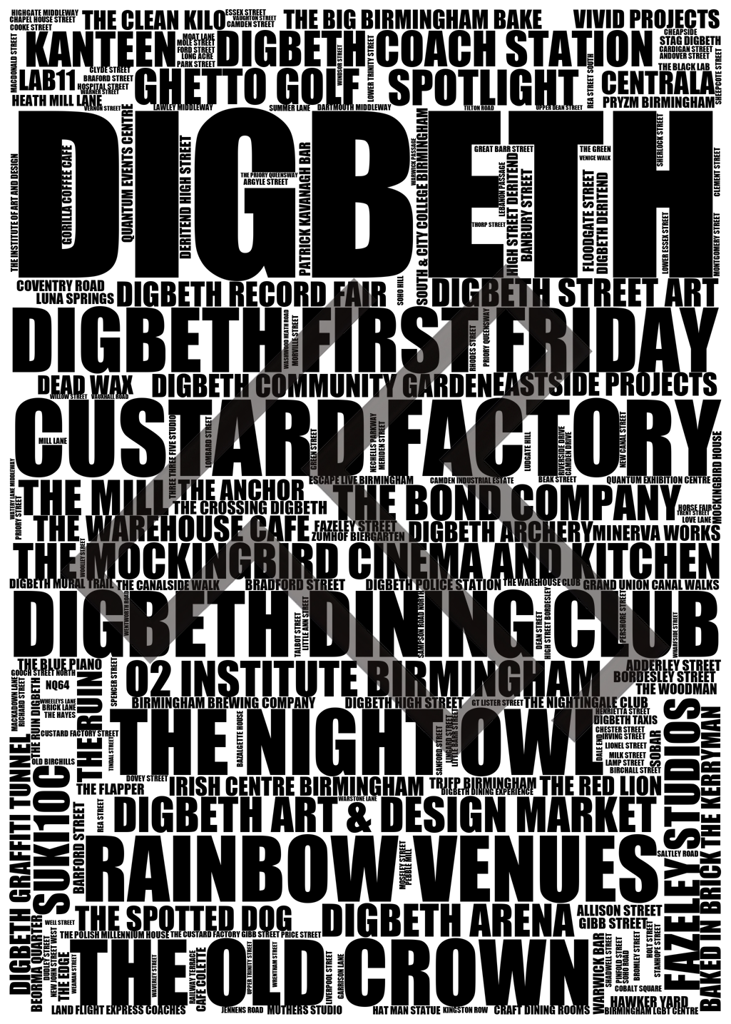 Digbeth - Premium Typographic Word Cloud Prints, Posters & Gifts