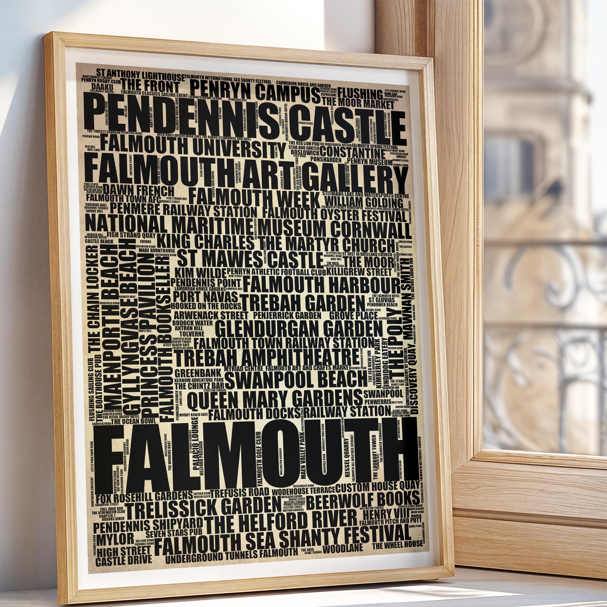 Falmouth - Premium Typographic Word Cloud Prints, Posters & Gifts