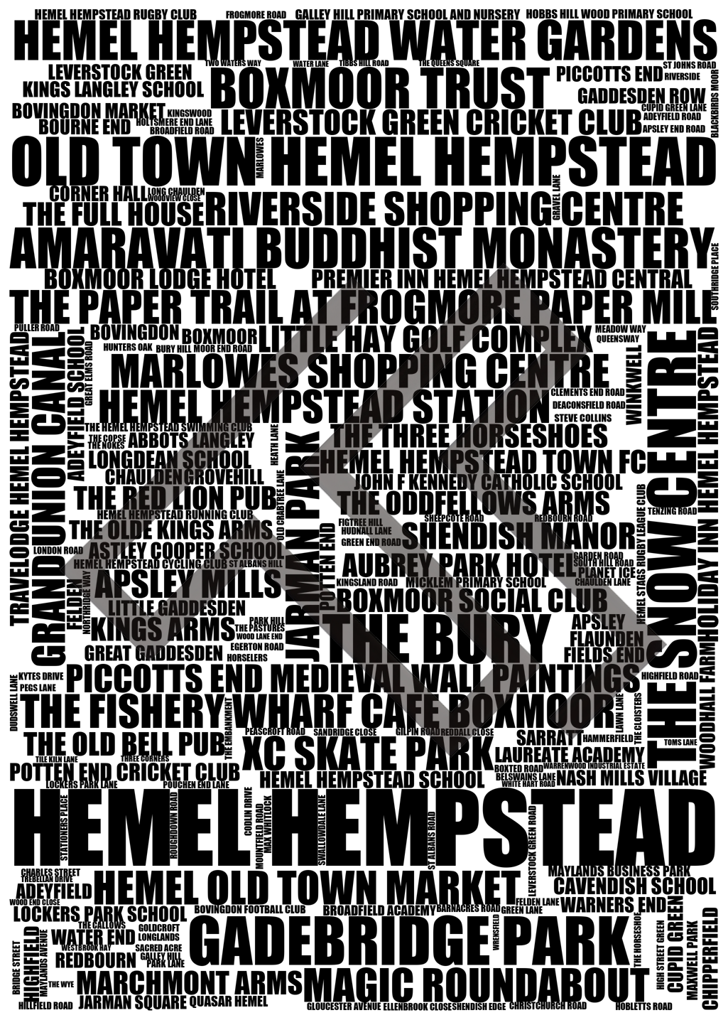 Hemel Hempstead - Premium Typographic Word Cloud Prints, Posters & Gifts