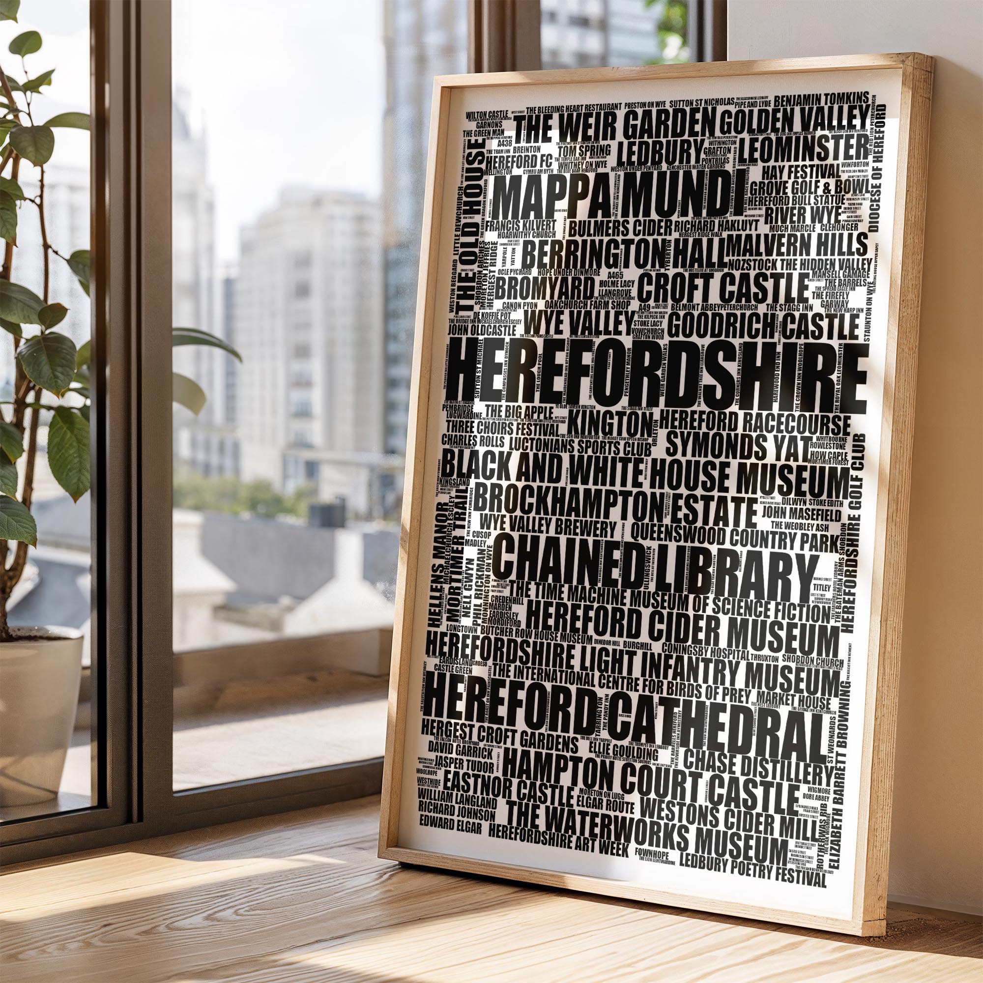 Herefordshire - Premium Typographic Word Cloud Prints, Posters & Gifts