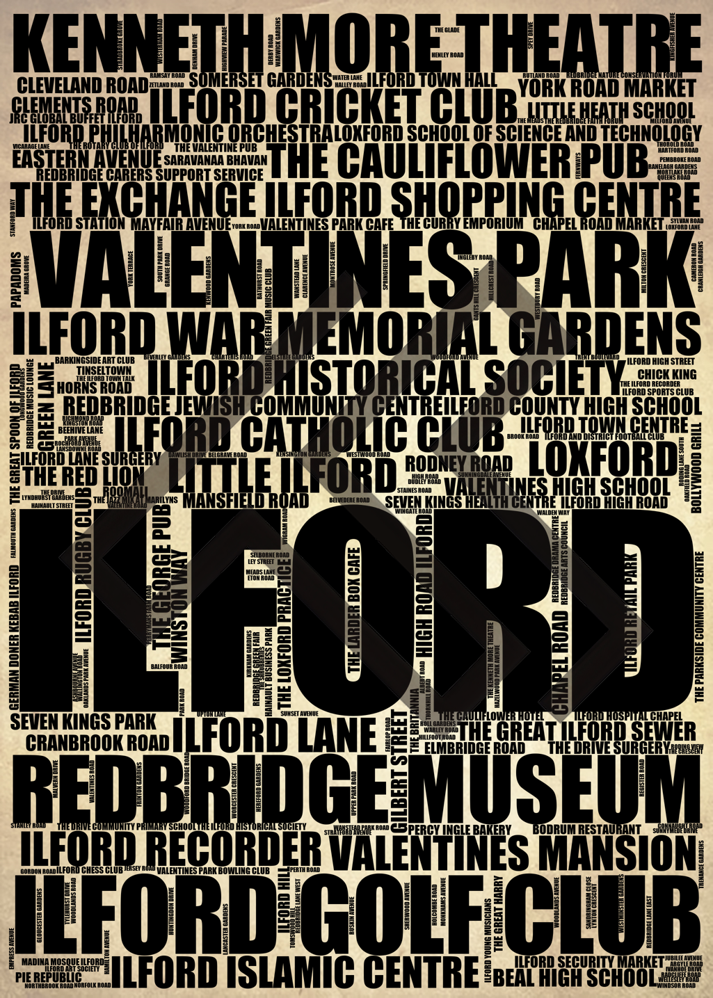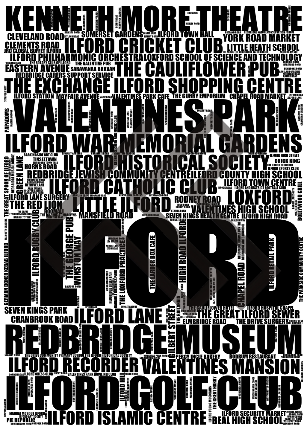 Ilford - Premium Typographic Word Cloud Prints, Posters & Gifts
