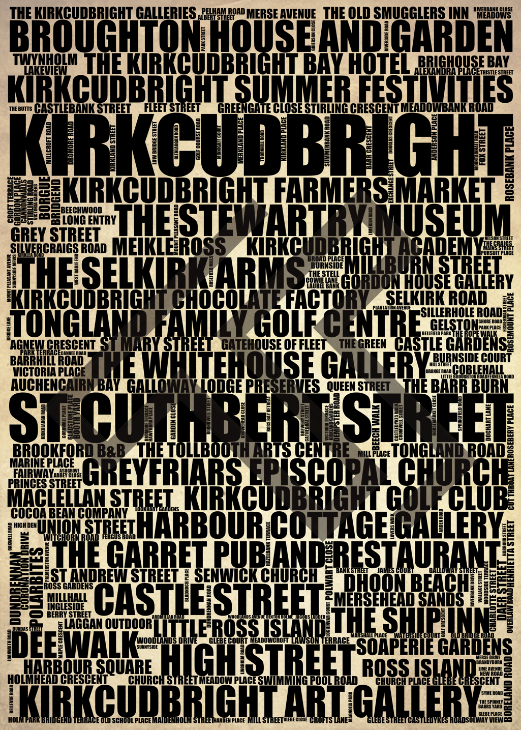 Kirkcudbright - Premium Typographic Word Cloud Prints, Posters & Gifts