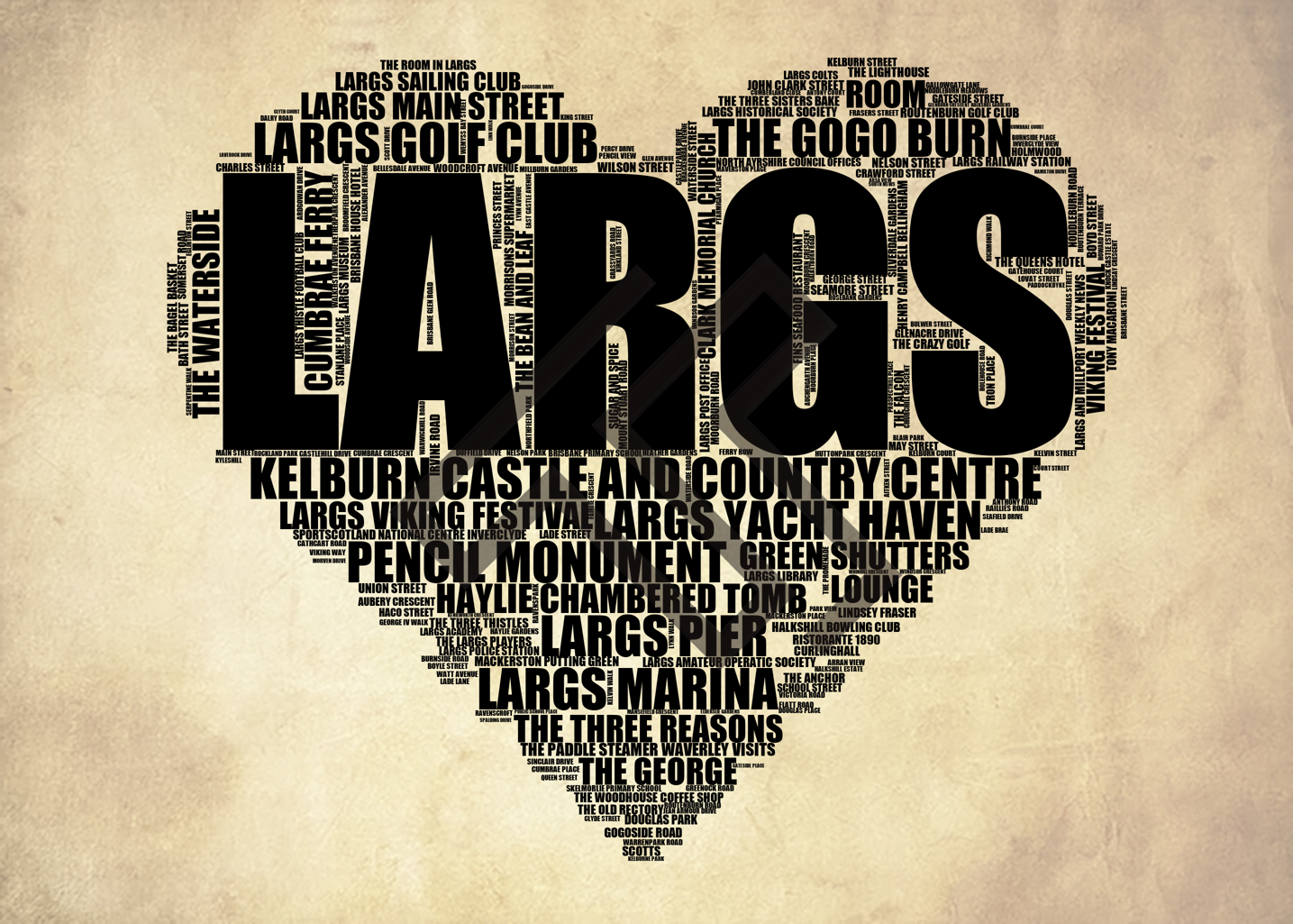 Largs - Premium Typographic Word Cloud Prints, Posters & Gifts