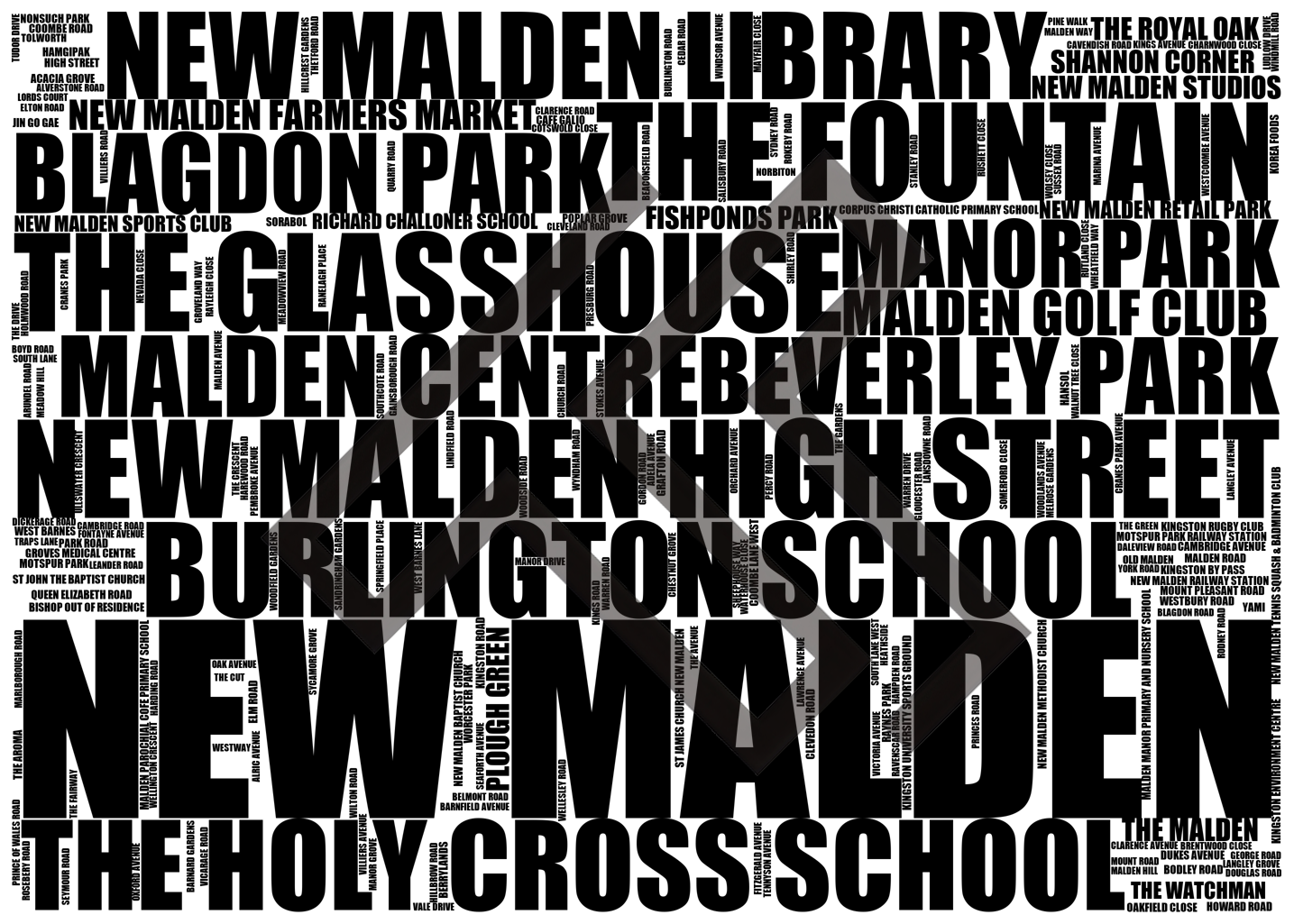 • New Malden - Premium Typographic Word Cloud Prints, Posters & Gifts
