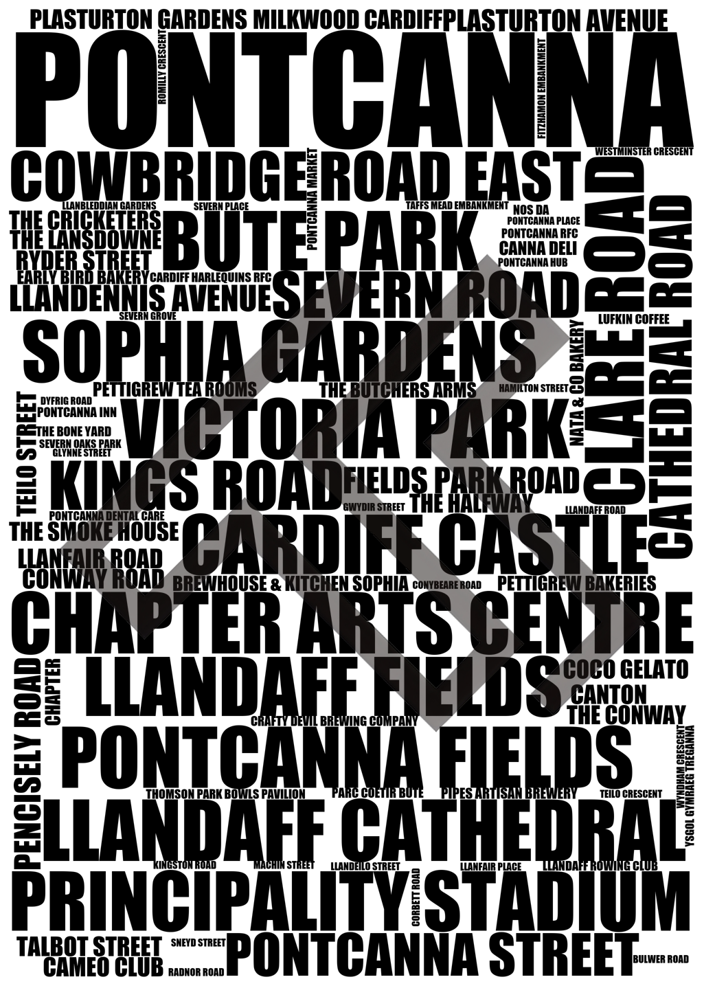 Pontcanna - Premium Typographic Word Cloud Prints, Posters & Gifts