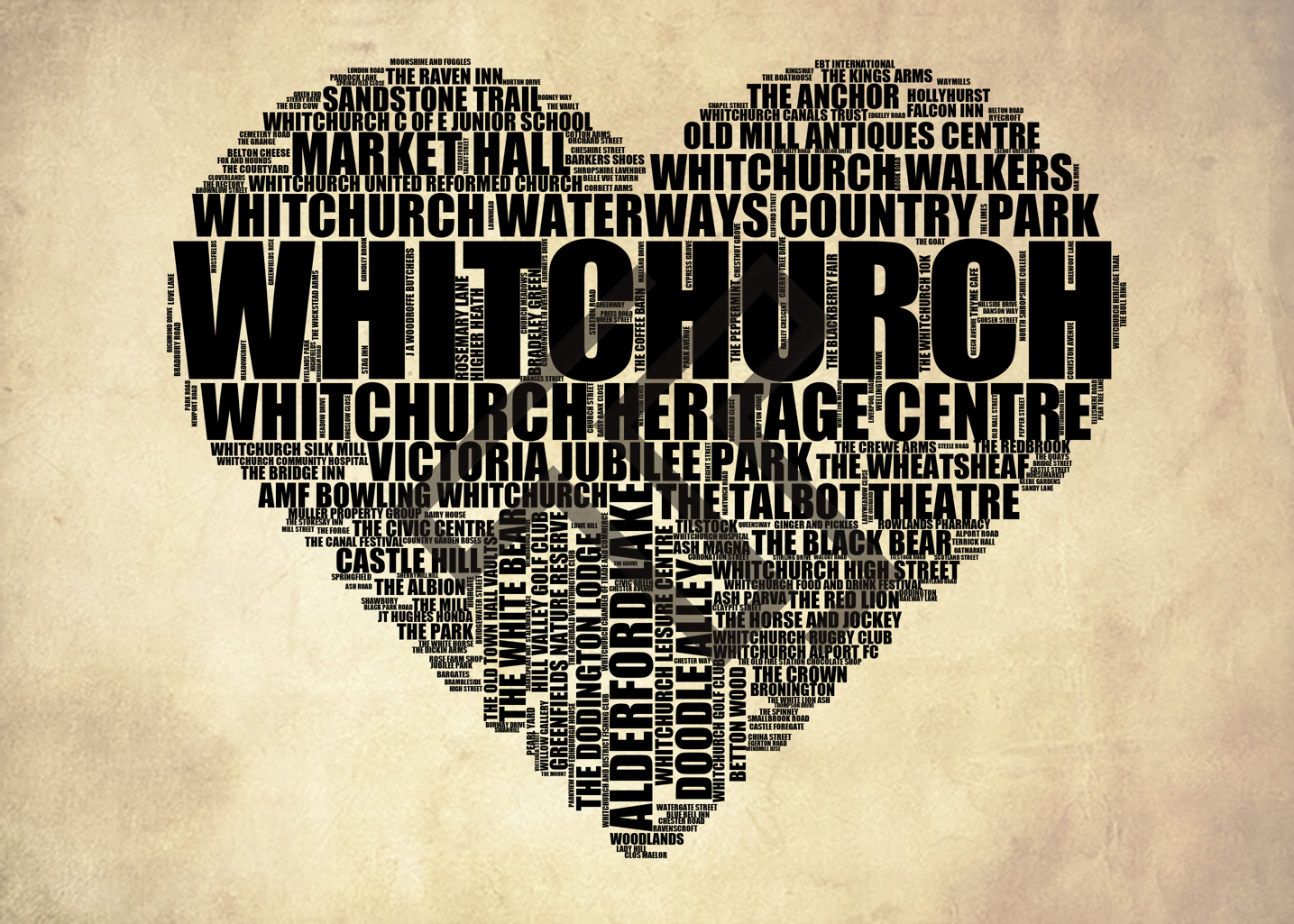 Whitchurch - Premium Typographic Word Cloud Prints, Posters & Gifts