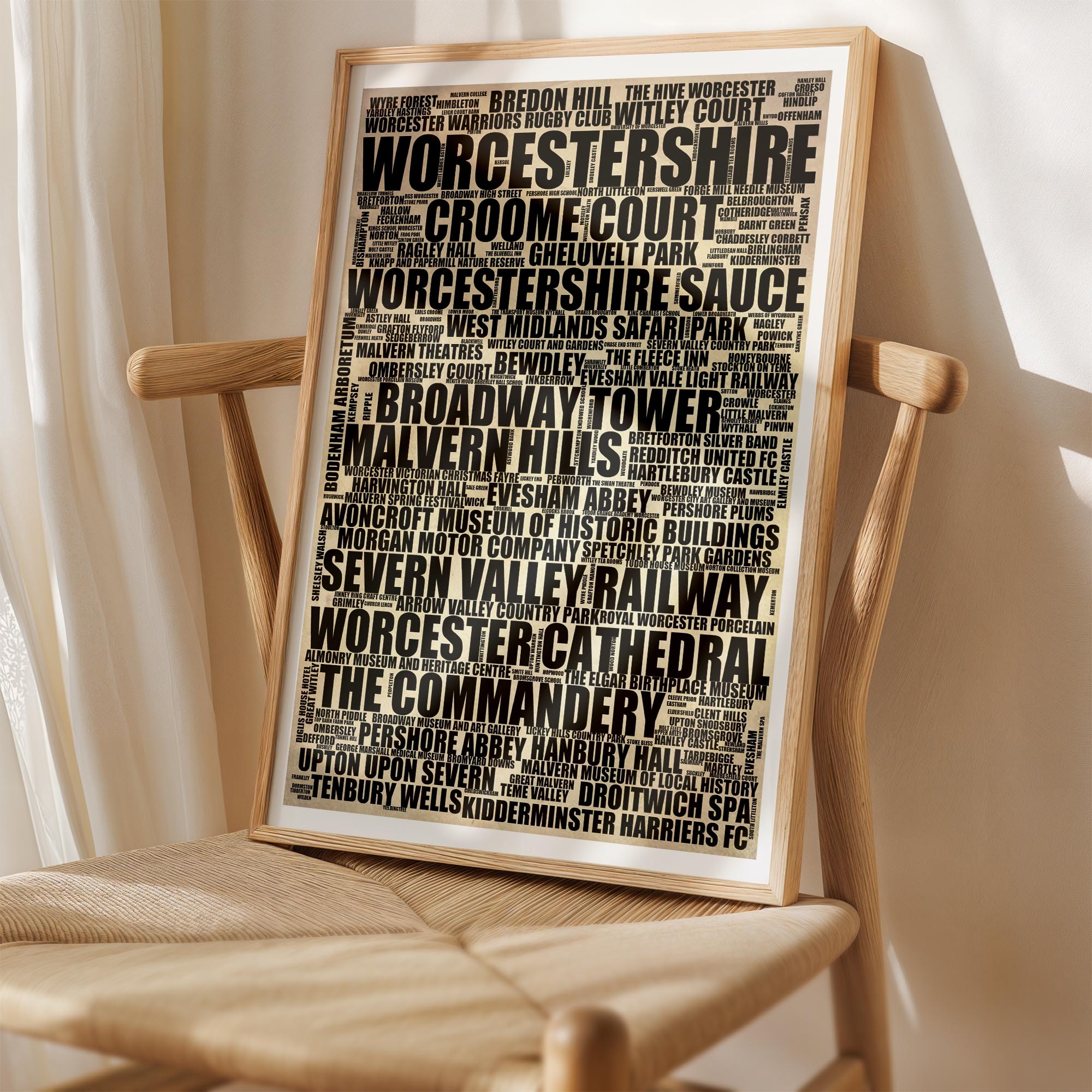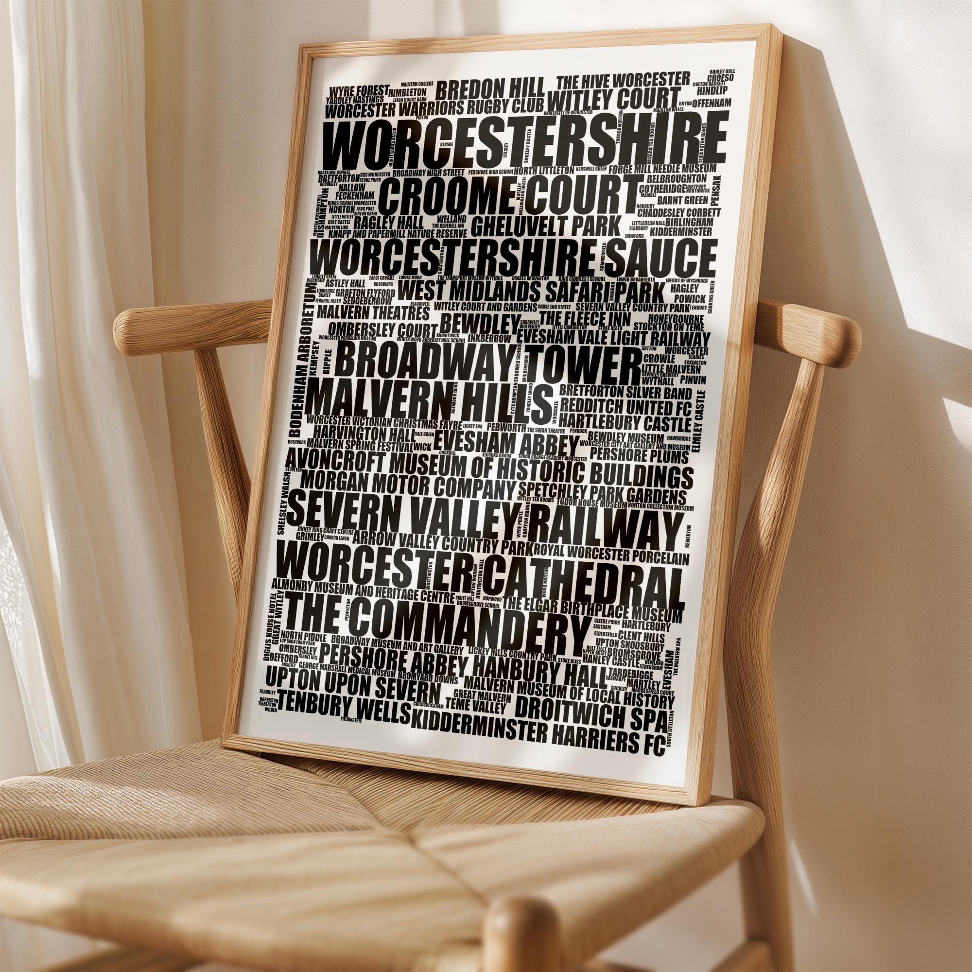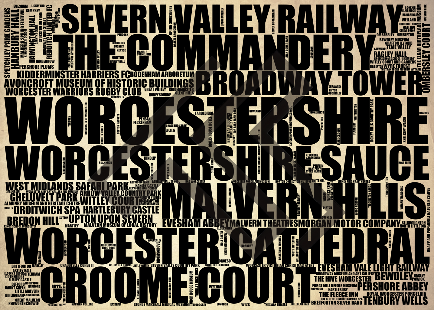 Worcestershire - Premium Typographic Word Cloud Prints, Posters & Gifts