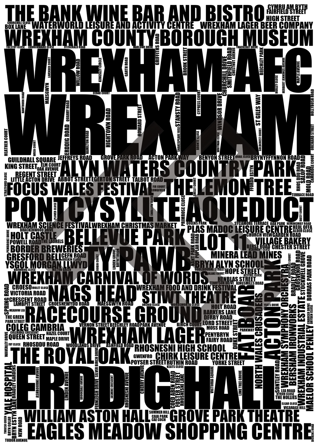 Wrexham - Premium Typographic Word Cloud Prints, Posters & Gifts